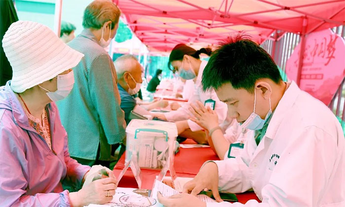 “医生,你也给我把把脉吧!”志愿者张阿姨今年80岁,见到络绎不绝的咨询人群,趁着服务工作的间隙,也忍不住前来咨询。张阿姨有七八年的高血压、高血糖病史,近段时间常出现头晕及腿脚无力的症状。经过详细了解病情和脉诊后,余主任建议她注意控制血糖,养成良好的饮食习惯,同时还要注意适量运动,保持愉悦的心情。