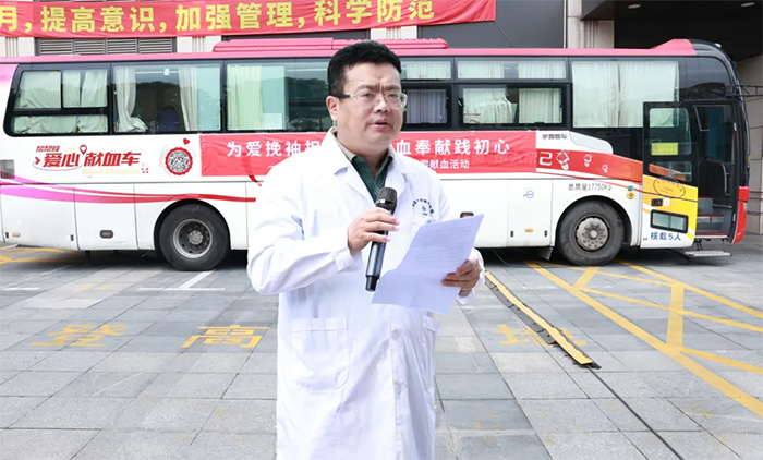 医院总经理兼书记朱敏致辞,表示,无偿献血是一项政府主导、全社会共同参与的公益事业。近年来,医院勇担使命,热血同行,积极推进无偿献血工作,从宣传到机制、从观念到理念,医院不断激发着全体职工对无偿献血的关注和参与热情。无偿献血工作已成为医院文化建设的重要组成部分。从2018年至今,医院共组织开展无偿献血活动5场,发展无偿献血志愿者达129人,完成147人次献血、合计献血量34200ml。