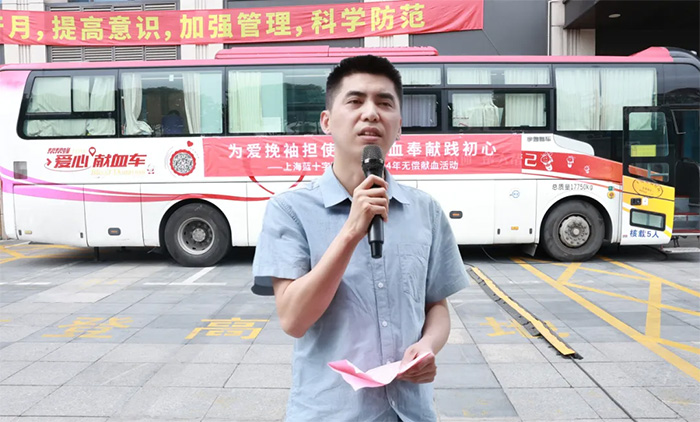 闵行区健康促进中心副主任朱斌对医院多年来积极支持无偿献血工作给予肯定,指出,无偿献血是挽救他人生命的崇高事业,是实现健康中国战略和医疗卫生服务体系高质量发展的重要内容,更是社会文明进步的象征。蓝十字职工心怀大爱,忙于本职工作之余,始终不忘发扬无私奉献精神,用点滴热血挽救他人生命,既是难能可贵的坚持,也是医院及全体职工爱心奉献和社会责任感的体现。