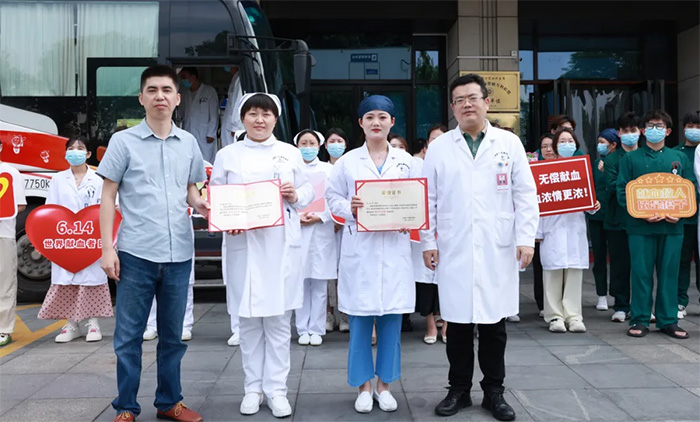 以典型为标杆,以榜样为力量。在医院历年组织的无偿献血活动中,涌现出一批常年坚持无偿献血的爱心志愿者先锋。为感谢他们“殷殷热血显担当”,鼓励更多的职工关心、支持、参与无偿献血,医院特授予神经内科总护士长、7A神经内三科护士长李楠楠,手术室护士王亚萍等“献血功勋者”荣誉称号。活动现场进行了隆重表彰,闵行区健康促进中心副主任朱斌、总经理兼书记朱敏共同为他们颁发了荣誉证书。