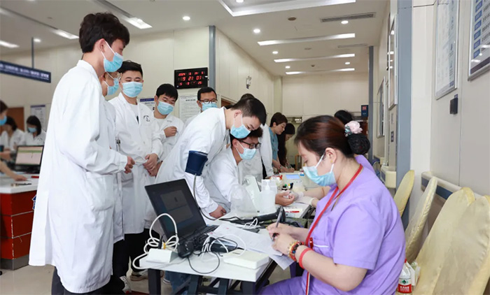早上9点30分,爱心献血悄然拉开“阵仗”。登记、检查、采血、验血、抽血……来自医院各科室献血志愿者精神饱满、热情高涨,纷纷挽起衣袖,献出自己的一份爱心,以热血灌注“生命之河”。