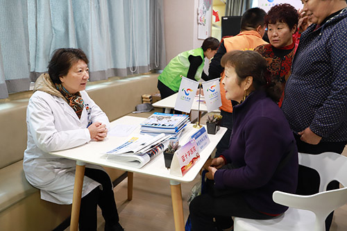 家住七宝老街的顾阿婆被头痛困扰了多年,这次正好遇到了在各类头痛个性化诊断治疗方面有丰富经验的戴秀珍主任。虽然活动现场人声鼎沸、热闹非常,戴秀珍主任仍认真聆听记录着顾阿婆的讲述,并根据其现场测量出血压偏高的情况,给予了顾阿姨防治建议。临走前,顾阿婆主动要了戴主任的名片,希望与专家保持沟通。