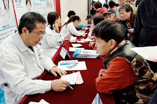 ▲现场咨询者络绎不绝,戴秀珍主任总是耐心聆听认真解答