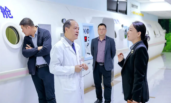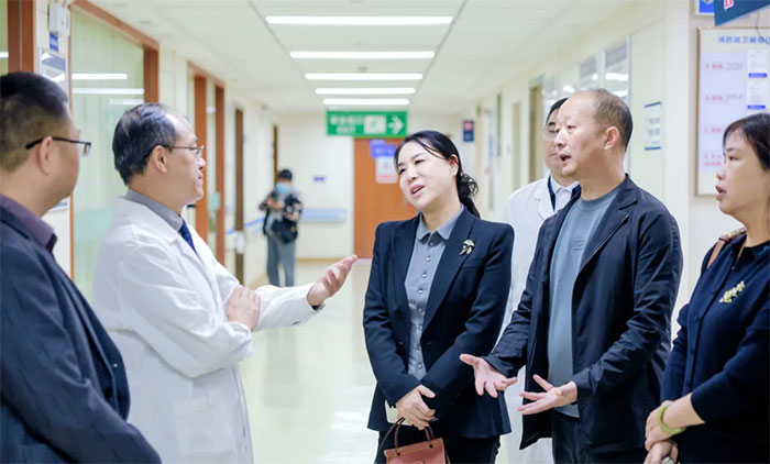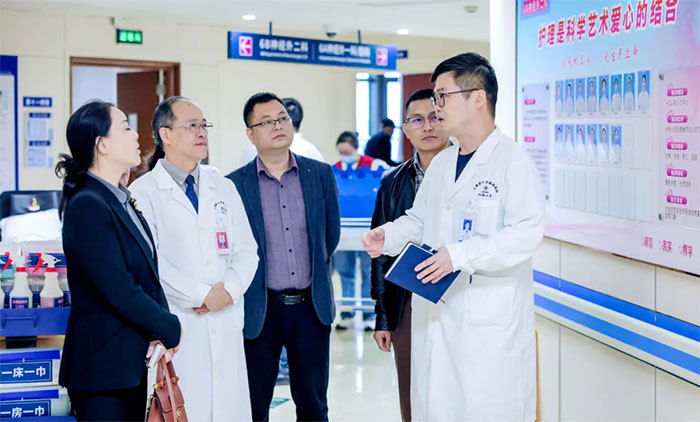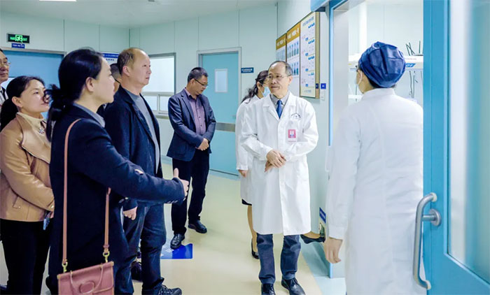 座谈会后,宝鸡市高新区领导一行在院领导的陪同下,实地走访了重症医学科、手术室、8A神经内六科、7A神经内三科、6B神经外二科、康复医学科、高压氧科、影像科等特色科室,双方就医疗质量管理、医疗技术开展等进行了充分交流。