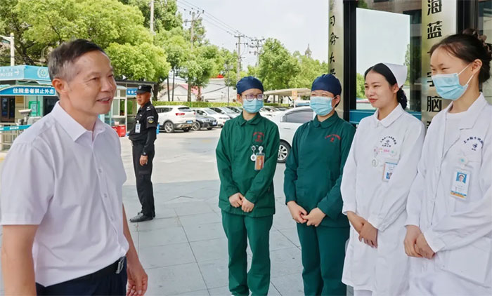 8月22日上午,南昌理工学院医学院院长叶俊华教授来上海蓝十字脑科医院【同济大学附属上海蓝十字脑科医院(筹)】考察应届护士工作情况,并进行了深入探讨交流,为双方今后全面开展产教融合、院校合作奠定了良好基础。医院书记朱敏、院长项耀钧等领导和相关科室负责人陪同接待。