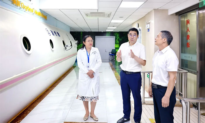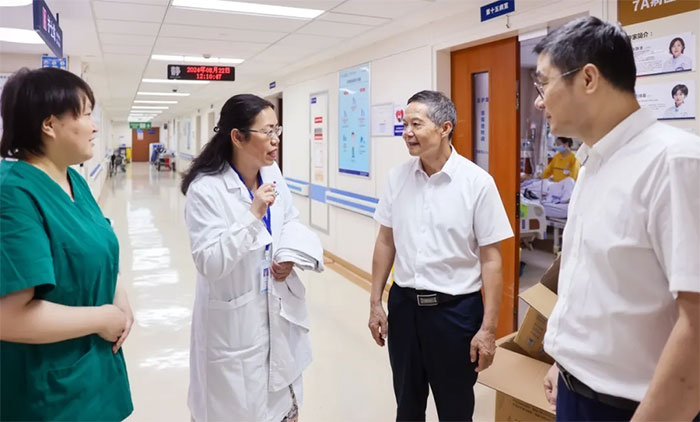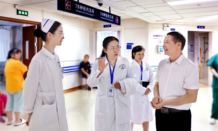 座谈会结束后,叶俊华院长在副院长潘耀良,护理部主任张秀娟、副主任阎友芬等的陪同下实地走访了7A神经内三科、7B神经内五科、康复科、高压氧科、影像科等特色科室。在潘耀良副院长及科主任/护士长的介绍中,医院的整体风貌给叶院长留下了深刻的印象。参观过程中,叶院长还听取护理部主任张秀娟介绍了7名应届护士在医院的工作、生活等情况。对于学生们在医院的良好表现,叶院长深感欣慰。