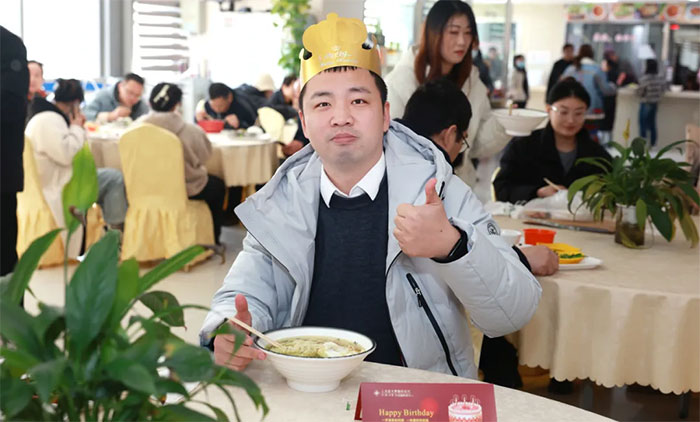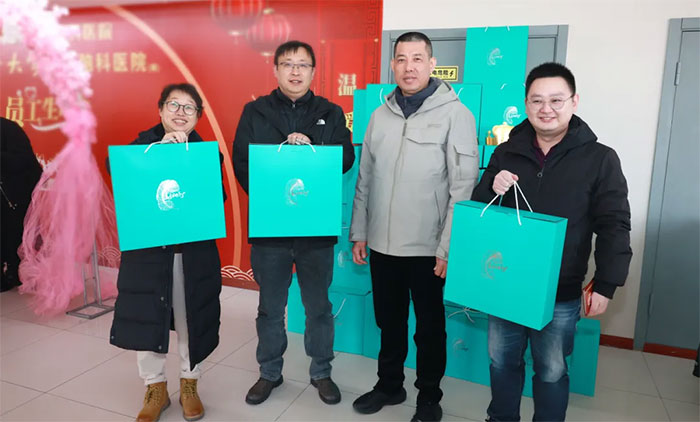 精美的贺卡、贴心的礼物、寄语“2025旺旺旺”的大蛋糕、寓意“平安长久”的长寿面……每一处贴心的细节,无不倾注着医院对员工的亲切关爱。