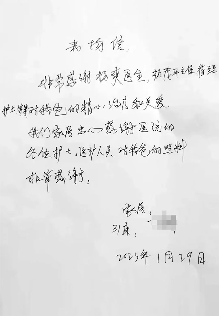 此外,还有神经内科7A病区付晓芳副主任医师自患者入院便精心治疗、兢兢业业,患者张某病情好转之际送来红包感谢;“非常感谢对我爸的精心治疗和关爱”,综合病区杨爽医生、杨茂平主任和崔兰兰护士等收到患者质朴的感谢信;神经外科重症监护病区护理团队精心护理暖人心、收到患者支付宝转账红包;神经内科重症监护8A病区护理团队如亲人般的护理获赞赏,患者王某虽已好转出院,还特意邮寄来一面锦旗......