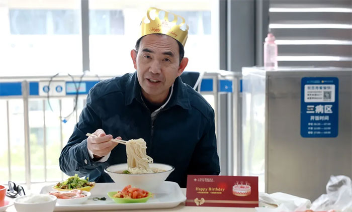 ▲ 骨科徐于保主任大快朵颐地嗦着长寿面