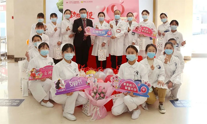 女神节!浪漫满屋,幸福满怀。总经理兼党支部书记朱敏、院长项耀钧等院领导代表医院全体男同胞,为我们的“天使”、“女神”们一一送上了衷心的祝福和精美的礼品。祝愿她们幸福健康,青春永驻!