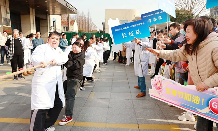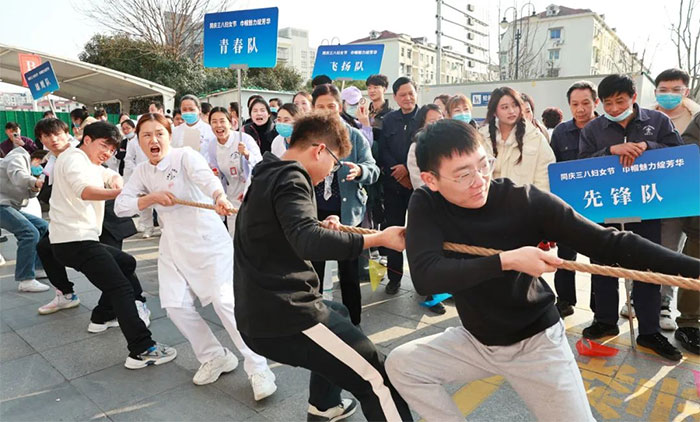 春意渐浓的三月,迎来了第114个“三八”国际妇女节。为让女性职工度过一个美好而充实的节日,丰富职工业余文化生活,展现职工团结、奋进、健康的精神风貌,上海蓝十字脑科医院举办了“同庆三八妇女节 巾帼魅力绽芳华”2024年拔河比赛,赛程分为预选赛、淘汰赛、半决赛和决赛。比赛得到院部、党支部、团支部及工会的重视,总经理兼书记朱敏为活动致开幕词,院长项耀钧任总裁判长,副总经理兼工会主席吴春芳、副院长周克祥等院领导现场为活动助阵。副院长潘耀良主持活动。