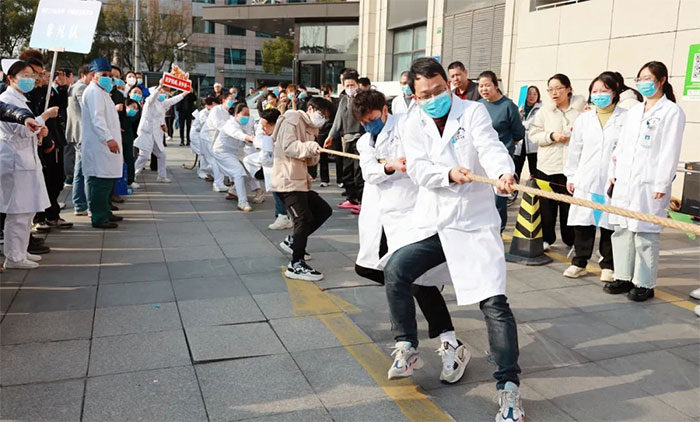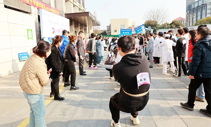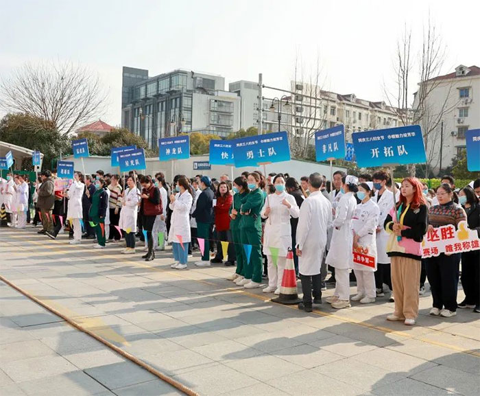 沐浴着春日的暖阳,感受着耳畔的微风,16支参赛队伍在医院门诊广场整齐列队:神龙队、先锋队、青春队、快乐队、梦之队、飞扬队、超越队、开拓队、星光队、星火队、非凡队、猛虎队、胜利队、长征队、勇士队、雄鹰队,每支队伍都有一个响亮的队名,既蕴含着昂扬向上的气势,也展示出一往无前的赢战姿态。