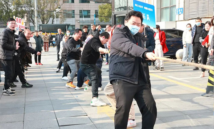 赛场如战场,拔河绳的两端,对垒的两组队员手似铁钳,紧握绳索,扎稳脚步,铆足精气神。大家方寸必争,赛况时而逆转、时而僵持,反复拉锯,牵动着每一个人的神经。对垒的两组实力悬殊较大的,眨眼的功夫便被直接“秒杀”,很是畅快淋漓。赛场上,“顶半边天”的女同胞们更是以巾帼不让须眉的气概,为着一个共同目标,不认输、不放弃、不退却,咬紧牙关,奋力拼搏直到最后一秒,成为了比赛中的一抹亮色!