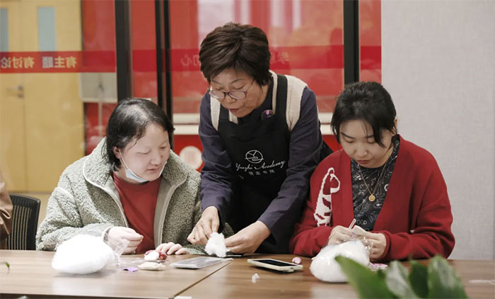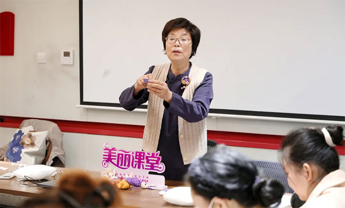 “今天从老师这里学到了新的针法,回家后我一定要试试!”黄洪涛兴奋地分享。
