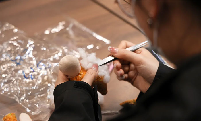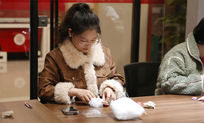 商俊娅看着自己制作的兔子香囊成就感满满:“香囊制作不仅考验了动手能力,更让我们在忙碌的工作中找到一片宁静,舒缓压力,感受传统技艺的魅力,这次体验意义非凡。”