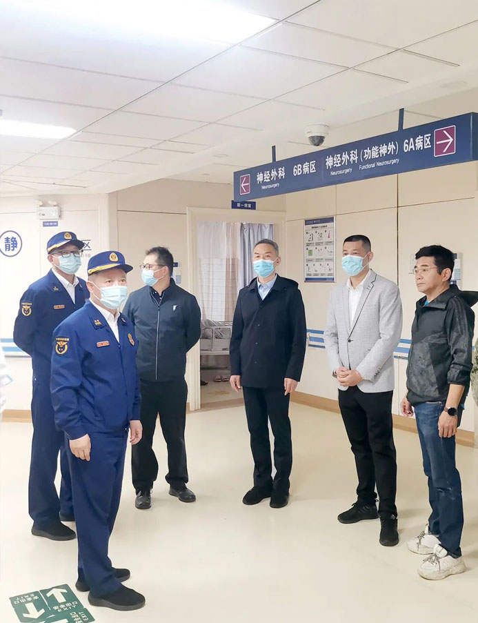 5月3日,市消防总队领导莅临上海蓝十字脑科医院,开展消防安全现场督导检查。医院副总经理吴春芳、副院长潘耀良等院领导陪同检查工作。