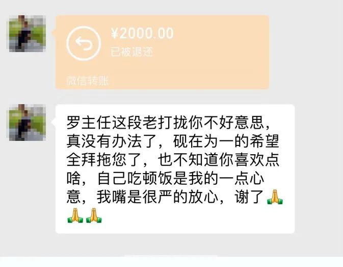 ▲家属微信发红包被罗佳主任婉拒