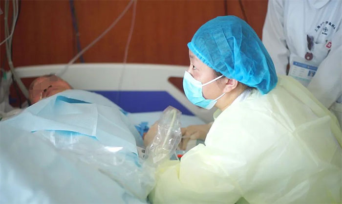 ▲ 神经内科7A病区护士长李楠楠正在为患者进行PICC置管