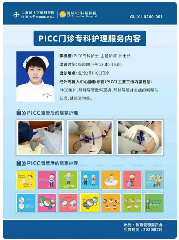 为进一步深化优质护理服务,满足医疗服务更高层级需求,提升患者就医体验度和满意度,2021年1月份,上海蓝十字脑科医院特开设护理专科门诊。目前开设的护理门诊由经专科适任培训获得资格证书的专科护士出诊,有PICC护理和伤口护理两个专科门诊。