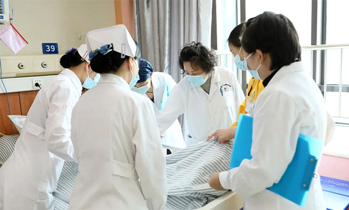 ▲ 叶文琴副总裁亲临病房督查并询问病人情况