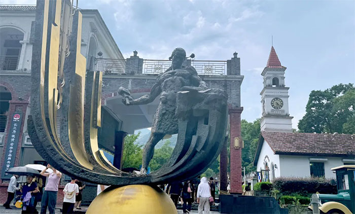 大家怀着崇敬探访建于1935年的毛主席下榻处“皇后饭店”,这座标志性建筑不仅是莫干山的风景点缀,更是中国近现代历史的重要见证,为如画风景增添了一抹庄重色彩。