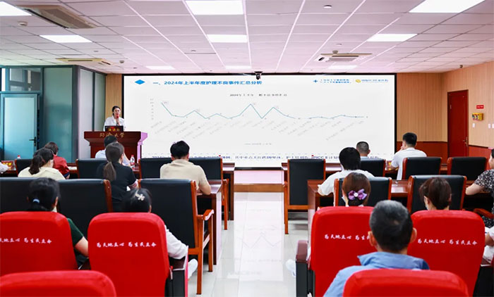 会上,护理部主任助理、质控总护士长舒畅从护理不良事件汇总、护理敏感指标结果反馈、典型案例分析三个方面,对医院2024年上半年度护理质量与安全工作进行了全面总结与详细分析。汇报中,她重点通过引用真实的护理典型案例,结合专业分析工具寻根究源,进行安全警示教育,以增强大家的安全意识,从源头杜绝类似事件的发生。