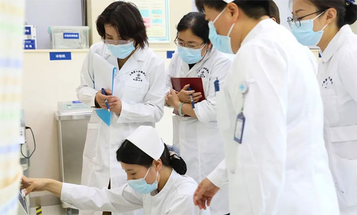 督导组专家还兵分多路,深入医院门诊、急诊,危重症患者、手术患者所在科室病房,通过查阅台账、现场查看、技能操作考试、人员访谈等多种形式开展实地督查工作。历时3个多小时的督查,督导组专家坚持“刨根问底”,力求不放过每一个细节。
