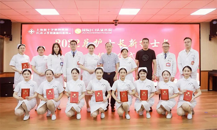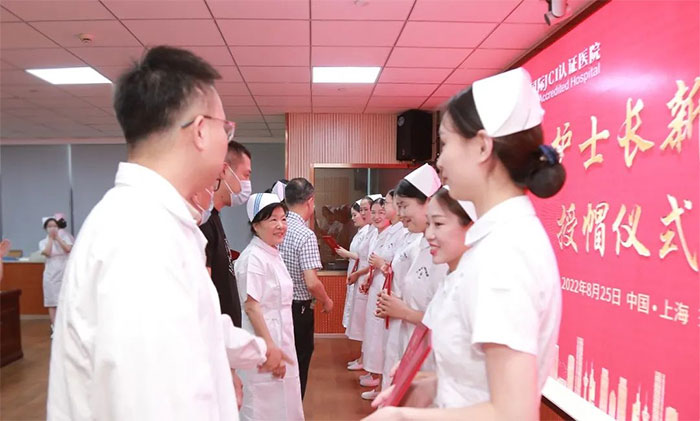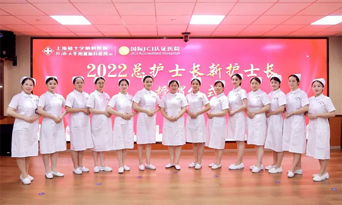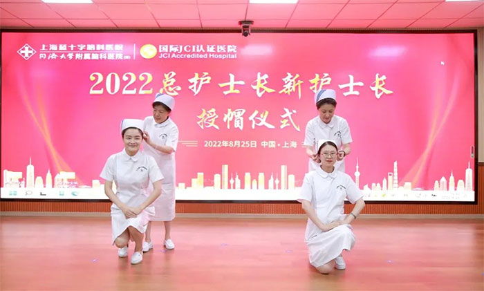 8月25日下午,一场特别的授帽仪式在上海蓝十字脑科医院多功能会议室隆重举行。新、老护士长代表,相关科室负责人,公司、医院领导齐聚一堂,为“2022年护士长岗位竞聘会”新履任重症监护片区总护士长赵得梅、神经内科片区总护士长舒畅,及各科室新履任副护士长陈琳、杨弘、王亚萍、黄朵朵、武玉燕、张姗姗、姚永茜完成授帽。