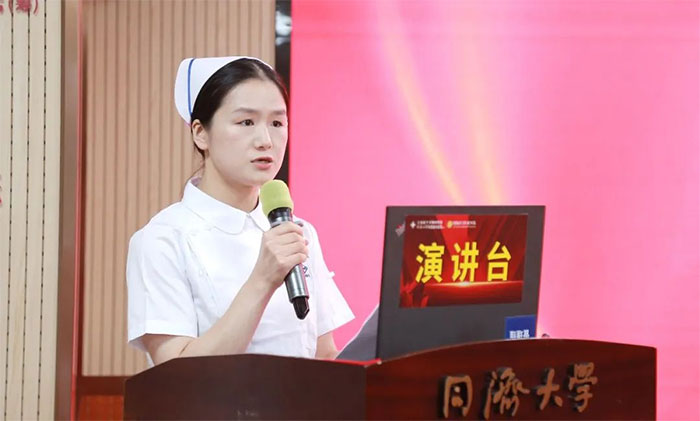新履任副护士长黄朵朵作为代表发言。“护理工作在苦累中,体现价值;在平凡中,描绘高尚;在琐粹中,铸就不凡.......”她以自己的成长之路,结合自身对护理职业的体悟、心得,对医院领导、对老护士长的悉心培养表达了感谢。同时,她还表示,将一如既往怀着对护理工作的热忱,迎难而上,勇挑重担,继续在护理岗位上发光发热,创造新佳绩。