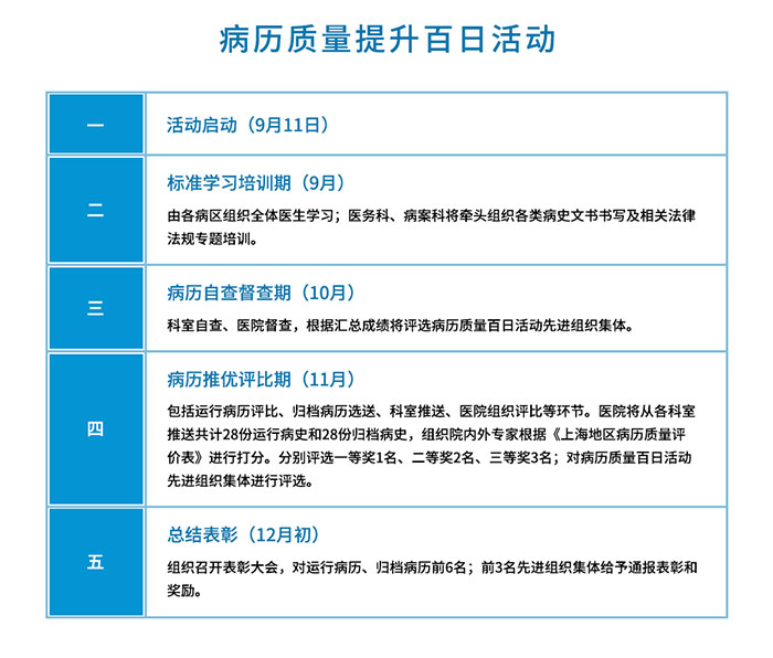 上海蓝十字脑科医院历来高度重视病历书写质控工作。在上级部门和单位的指导下,不断顺应新形势新变化,健全完善病历管理制度,加强相关培训工作,持续开展病历质控专项检查督查。总经理兼书记朱敏希望,以此次“病历质量提升百日活动”为契机,营造人人参与的良好氛围,将病历质量提升工作做深做实,进一步提高服务质量,推动医院高质量发展。