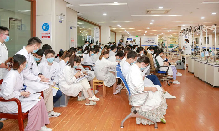 Q:“2楼抢救车的具体位置在哪?国际患者安全目标有什么?患者身份识别工具有哪些?......”主持人李震医师不停提问。
