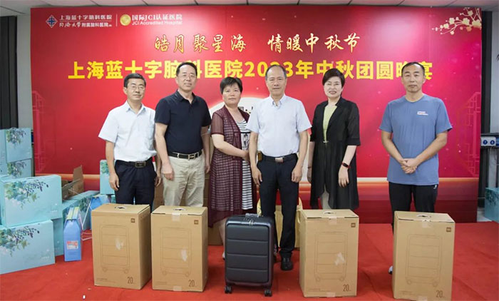 又是一年中秋日,又是一年团聚时。在中秋、国庆“双节”来临之际,为提升团队凝聚力,增强职工归属感,进一步彰显蓝十字和睦大家庭的浓浓关爱。9月28日晚,上海蓝十字脑科医院举办“皓月聚星海,情暖中秋节”团圆晚宴,院领导班子、各科主任、护士长、副护士长及职能部门负责人等欢聚一堂,共庆中秋国庆佳节,共话蓝十字情怀。