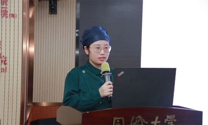 从3月底开始,始终留守医院的5A病区孙方媛,在抗疫过程中不幸急性荨麻疹发作。为了不让父母担心,她一直隐瞒病情,直到如今身上仍留有疤痕。情到深处,泪洒当场。与会人员也都以热烈的掌声相回应。至情至性,有感动,更有钦佩。