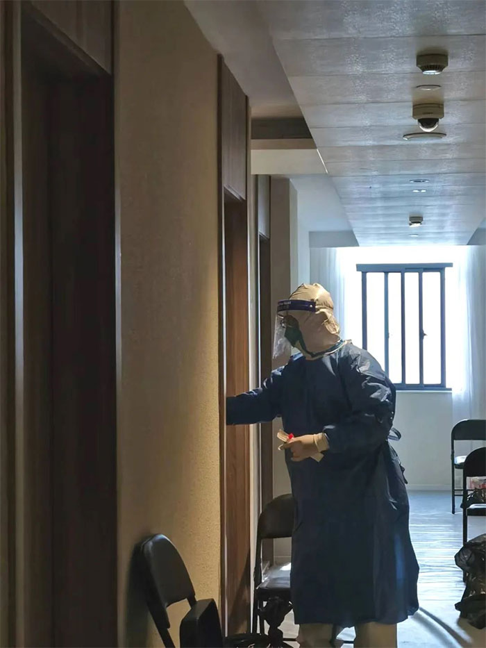 在集中隔离点,医务工作人员的基本职责是保障隔离人员的生命安全和健康,帮助他们完成每日固定的核酸检测。除此之外,还要保障一些特殊人群的就医和用药需求;做好隔离人员入住的前期准备、登记引导;基本信息统计核实;健康状况评估监测;防疫知识培训指导;防疫物资发放;环境消毒消杀及检测;垃圾清理及引导、帮助解除隔离送返等。