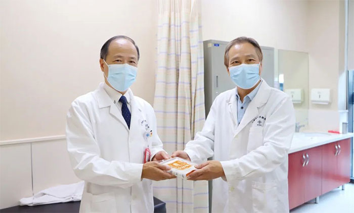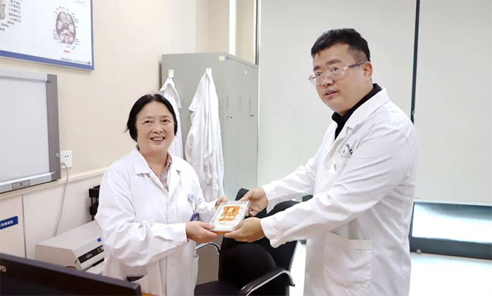 ▲ 涂爷爷和刘爷爷收到项院长送的重阳糕,难掩激动