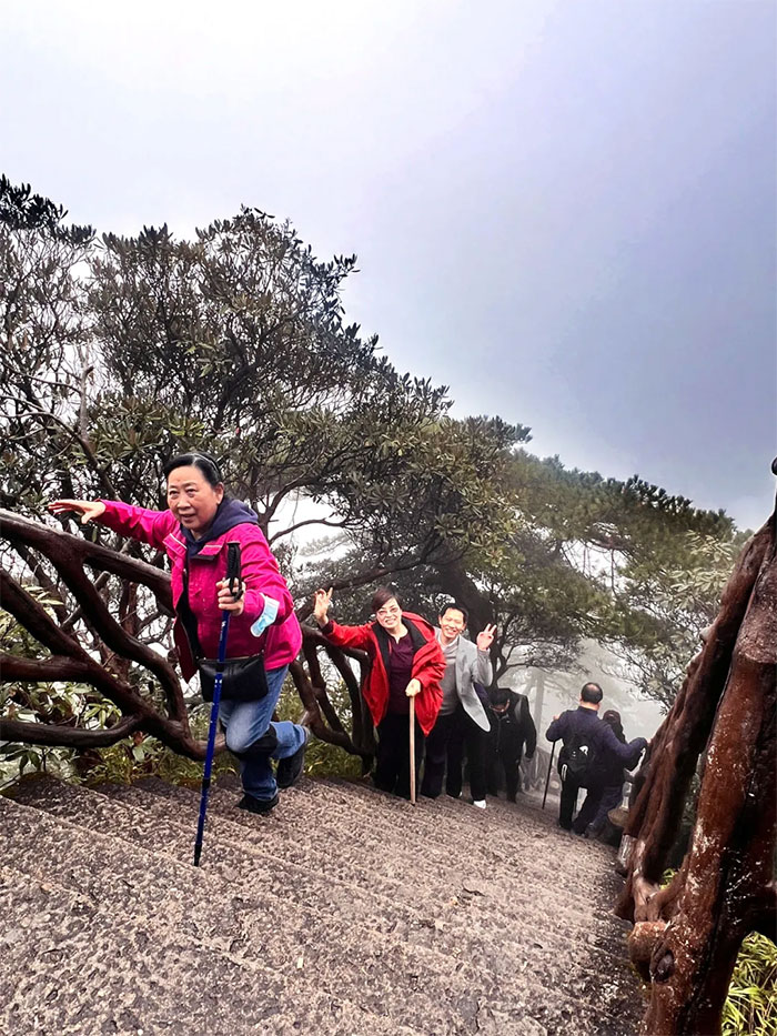 沿盘山石径拾级而上,大家并未因山路的崎岖而畏惧,携手并进,相互扶持,齐心协力,迎难而上,最终成功抵达峰顶,领略奇峰异景,在仙女峰、天下第一仙山等景点,留下了最美好的记忆和笑容。