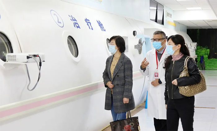座谈会后,在周克祥副院长和吴春芳副总经理的陪同下,潘卫真主任等一行到医院神经内/外科重症监护病区、神经外科6病区、康复科、高压氧科、影像科、DSA脑血管介入科、门急诊等特色科室实地参观,双方就医疗质量管理、医疗技术开展、互联网医院建设等工作的具体情况进行了充分交流,均感获益匪浅。