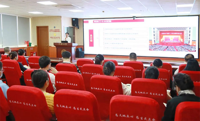 授课中,杨兆兴老师结合新时代以来的实践,对党的二十大报告加以研究阐释,重点讲授党的二十大报告的主要内容和核心精神,引领大家理解把握中国式现代化的中国特色和本质要求,并强调要把学习宣传贯彻党的二十大报告精神作为首要政治任务,坚持学思用贯通、知信行统一,把党的二十大精神落实到实际工作中。