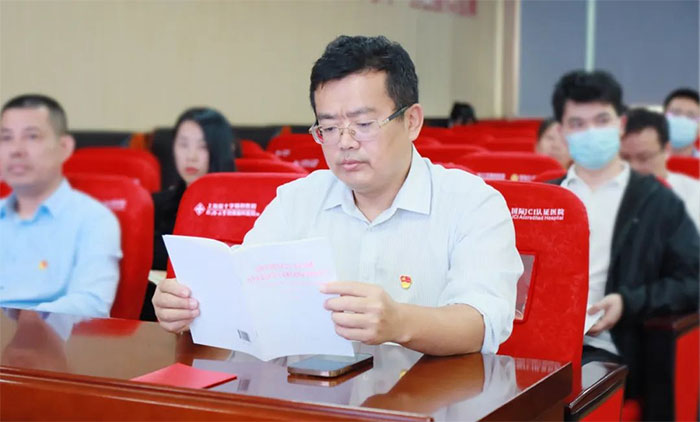 本次特邀七宝镇社区党校讲师团杨兆兴老师莅临作《高举伟大旗帜以中国式现代化全面推进中华民族伟大复兴》专题党课。医院总经理兼党支部书记朱敏,副院长潘耀良、周克祥,副总经理兼工会主席吴春芳,及医院党员、入党积极分子等共同参加学习。医院党支部副书记赵宇兰主持。