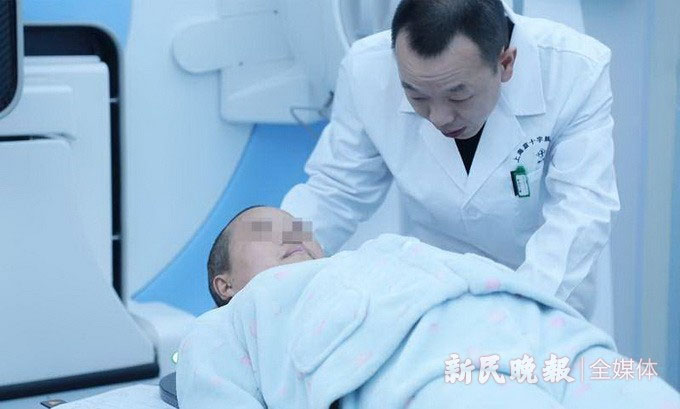 中午10点,在做好充分的放疗准备后,患者胡女士来到放疗科进行放射治疗,这次精准放射治疗将在放疗专家王国民教授指导下进行。放疗技师首先会提前进行设备验证,之后胡女士在技师的协助下躺上了放疗床,技师为其固定好头部,并告诉患者这次放射治疗所需时间和注意事项。其中一位技师在操作室输入放射治疗的参数,另外两位在机房进行摆位,最后一同核对参数,等一切就绪后放射治疗开始。十分钟后,患者的放射治疗就结束了。据王国民教授介绍,患者第一次进行放射治疗需要10分钟左右,因为患者第一次放疗需要进行CT扫描,要与定位时的肿瘤位置进行匹配,进一步验证放疗的部位,之后治疗时间就会比较短,大概只需2—5分钟就可以完成一次放射治疗。患者需要进行一个疗程的放射治疗,用时大概一个月左右,每天要进行一次放射治疗,一周大概要做5次左右,治疗次数也会根据患者的后续具体治疗情况进行适当的调整。