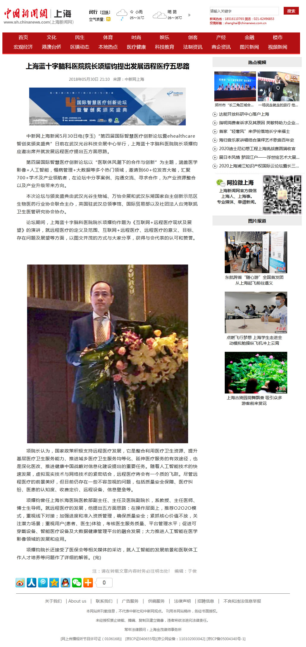 中新网上海新闻5月30日电(李玉)“第四届国际智慧医疗创新论坛暨ehealthcare智创奖颁奖盛典”日前在武汉光谷科技会展中心举行,上海蓝十字脑科医院院长项耀钧应邀出席并就发展远程医疗提出五方面思路。