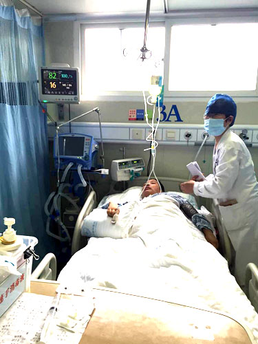 图为李鲁萍正在观察患者病况