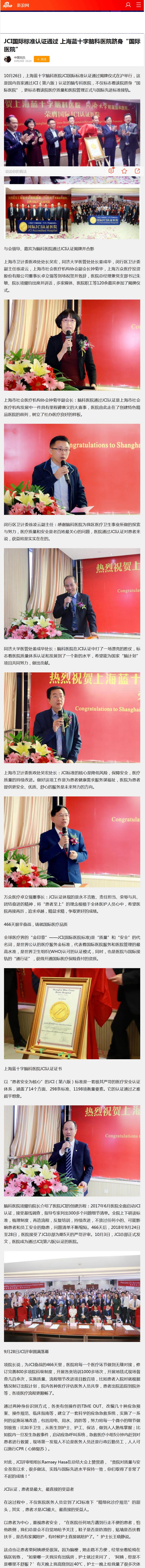 10月26日,上海蓝十字脑科医院JCI国际标准认证通过揭牌仪式在沪举行,这标志着该院医疗质量和医院管理正式与国际标准接轨。