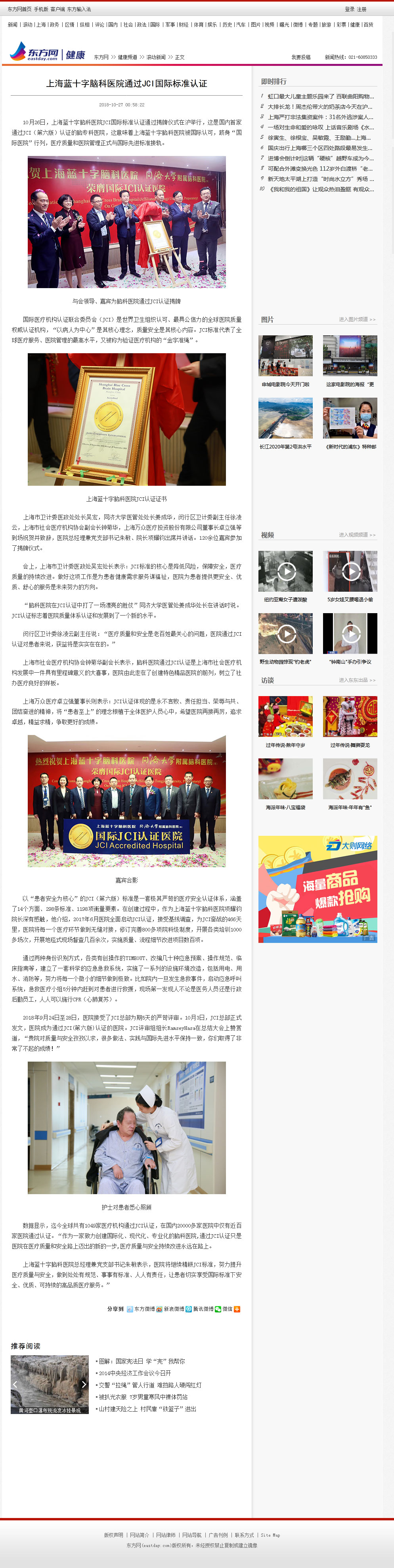 10月26日,上海蓝十字脑科医院JCI国际标准认证通过揭牌仪式在沪举行,这,这意味着上海蓝十字脑科医院被国际认可,医疗质量和医院管理正式与先进标准接轨。