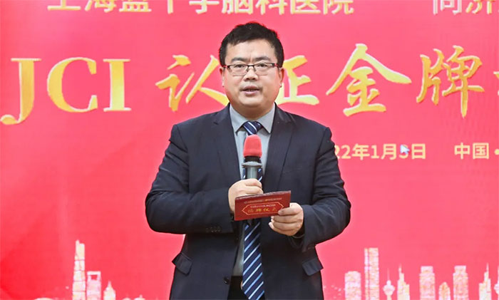 上海蓝生脑科刘轶永总经理致辞:代卓立强董事长转达祝贺与关切,肯定了医院取得的喜人成绩。JCI“患者至上”理念一定根植于医院全员心中及医疗服务的每一个环节中,希望医院精益管理、加强内涵建设,争取更好的成绩。