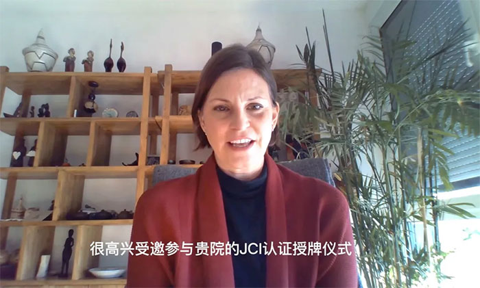国际JCI认证(复评审)评审小组组长、行政组评审委员Alissa Peacock女士也发来祝贺视频,与医院共享揭牌的喜悦。