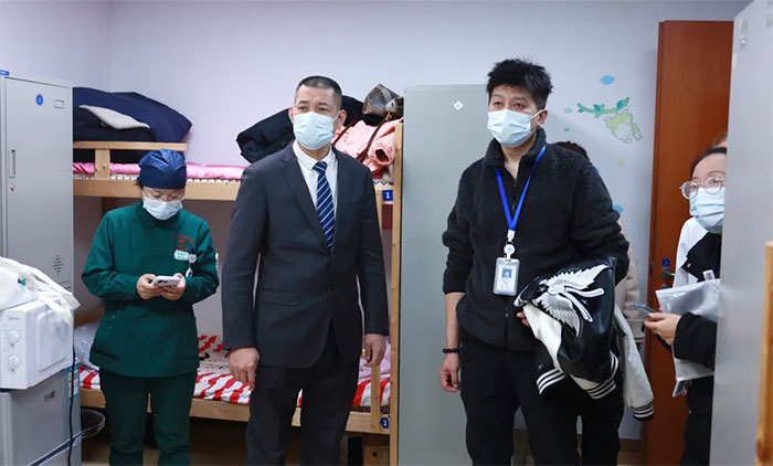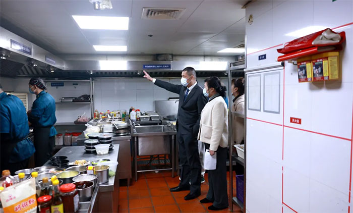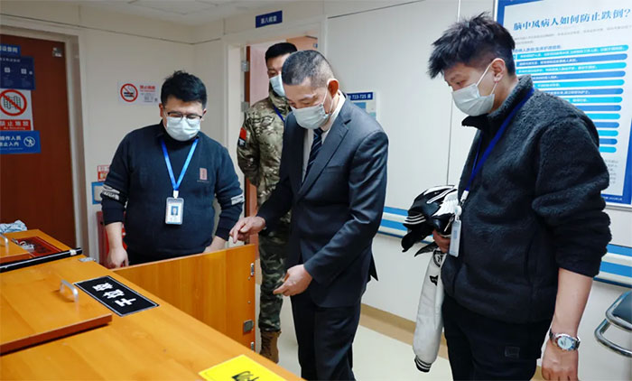 检查组一行深入10F综合内科、9F重症医学科、8A神经内六科、8B神经内7科、7A神经内三科、7B神经内五科、康复医学科、检验科、中医科、医学影像科、医院食堂等,对设备机房、配电房、电梯间、消防通道、医生休息室、危化品暂存点、安保消防控制室、食堂操作间等重点部位开展检查。