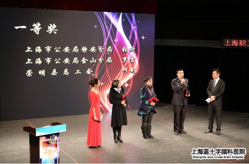 上海蓝十字脑科医院党支部书记朱敏上台领奖