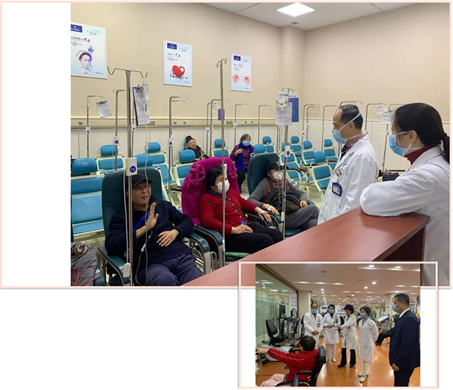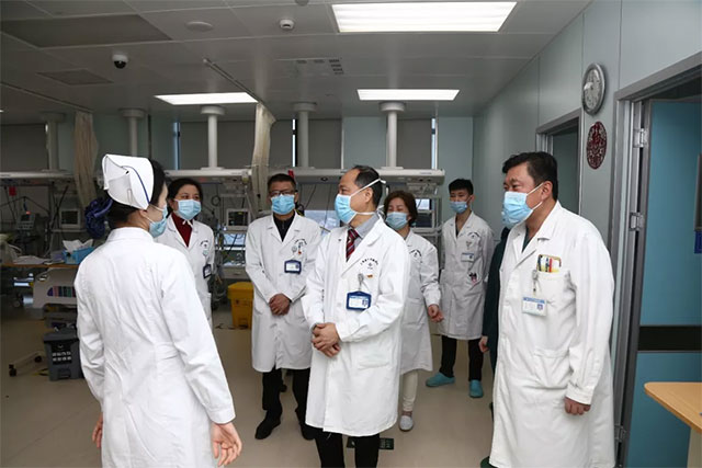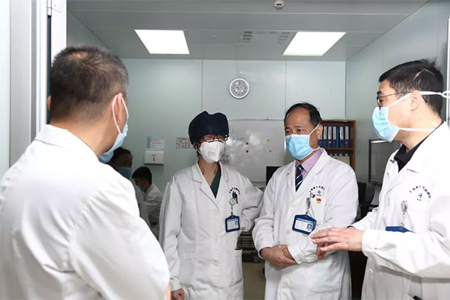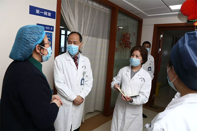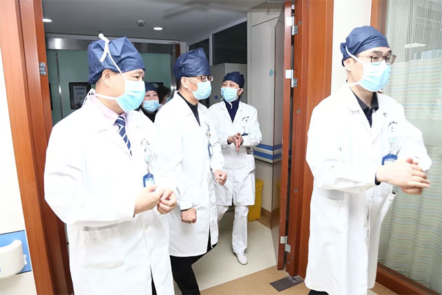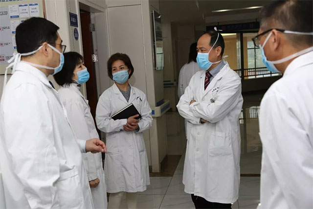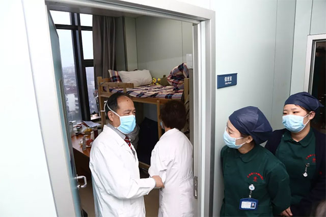 通知下发同时,项耀钧院长又带领医院高层去各病区查房和慰问。并且做到事无巨细,从值班室到垃圾站,从病区到主任办公室,都要仔细查看,无一疏漏。