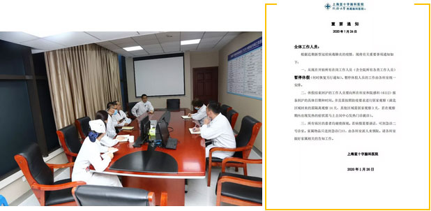 接着,医院管理层决定:所有医护人员暂停休假,尽量赶回医院正常上班。在上海市的员工明天即刻上班,在外地回沪人员,非疫区来的请居家观察3天后上班;疫区回来的请居家观察14天后上班。